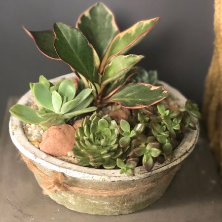 7” dish succulent dish garden paying homage to one of the most amazing places on earth, Red Rocks! This ecosystem would be happy in a well lit office or home alike. Perfect for a cadenza or coffee table. Can be a lasting centerpiece or thoughtful gift.